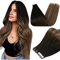 Amazon Com Full Shine Balayage Tape In Hair Extensions Human Hair 12 Inch Glue Hair Extensions 30 Gram 20 Pcs Adhesive Hair Extensions Black Ombre Pu Tape In Hair 1b 6 27 Black And