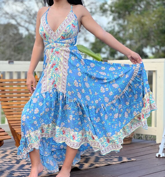 Boho Ruffle Dress Boho Summer Dress Bohemian Dress Maxi Dress Boho Print Dress Hippie Dress Floral Fashion Dress Baby Blue Yellow Pas Etsy